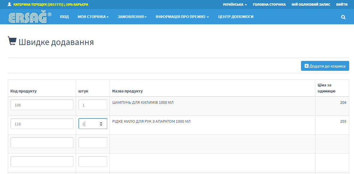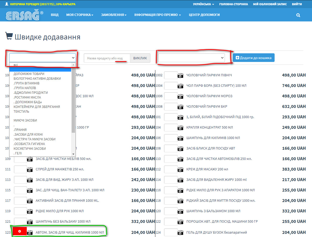 Як зробити замовлення товарів з особистого кабінету Ерсаг з фото та відео